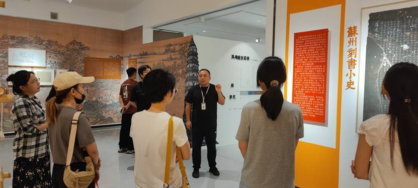 活动伊始,由市方志办党员志愿者带领各位联盟单位党员参观了市方志馆最新临展“君到姑苏见—康熙·苏州寻迹展”,介绍了《(康熙)苏州府志》编纂情况,依据展览动线带领大家了解了康熙南巡的苏州线路,并一路介绍苏州各处的风土人情和历史典故。随即又带领大家参观了28165万彩网,并观看方志馆介绍宣传片。活动最后,由市方志办党总支书记傅强同志讲授题为《风景旧曾谙·百年苏州影像》的地情文化党课;他以影像为切入点,为观众讲述了苏州近现代以来的发展与变迁,为参会者上了一堂生动的地情课。