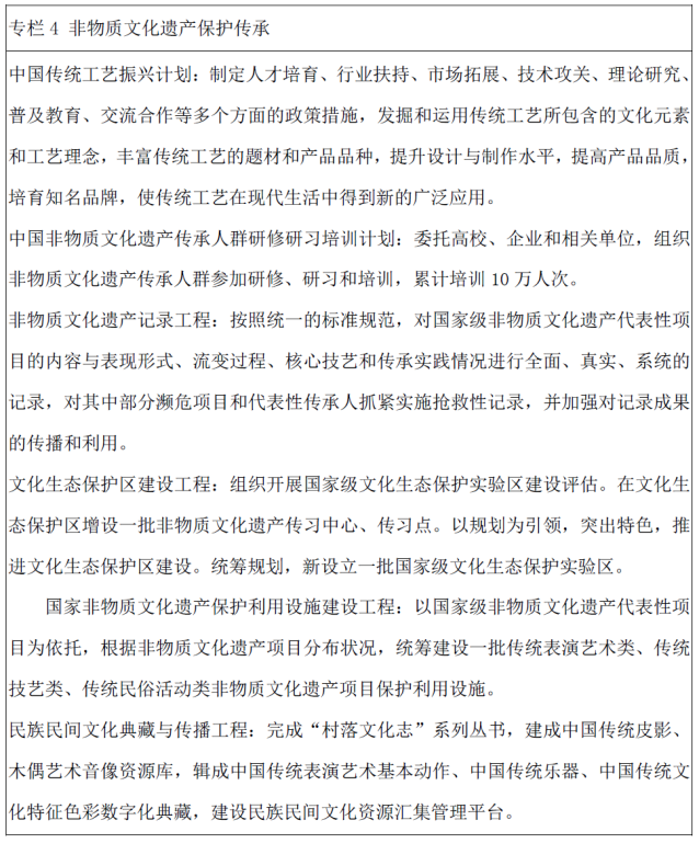——到“十三五”期末,对非物质文化遗产传承人群开展研修研习培训达到10万人次。