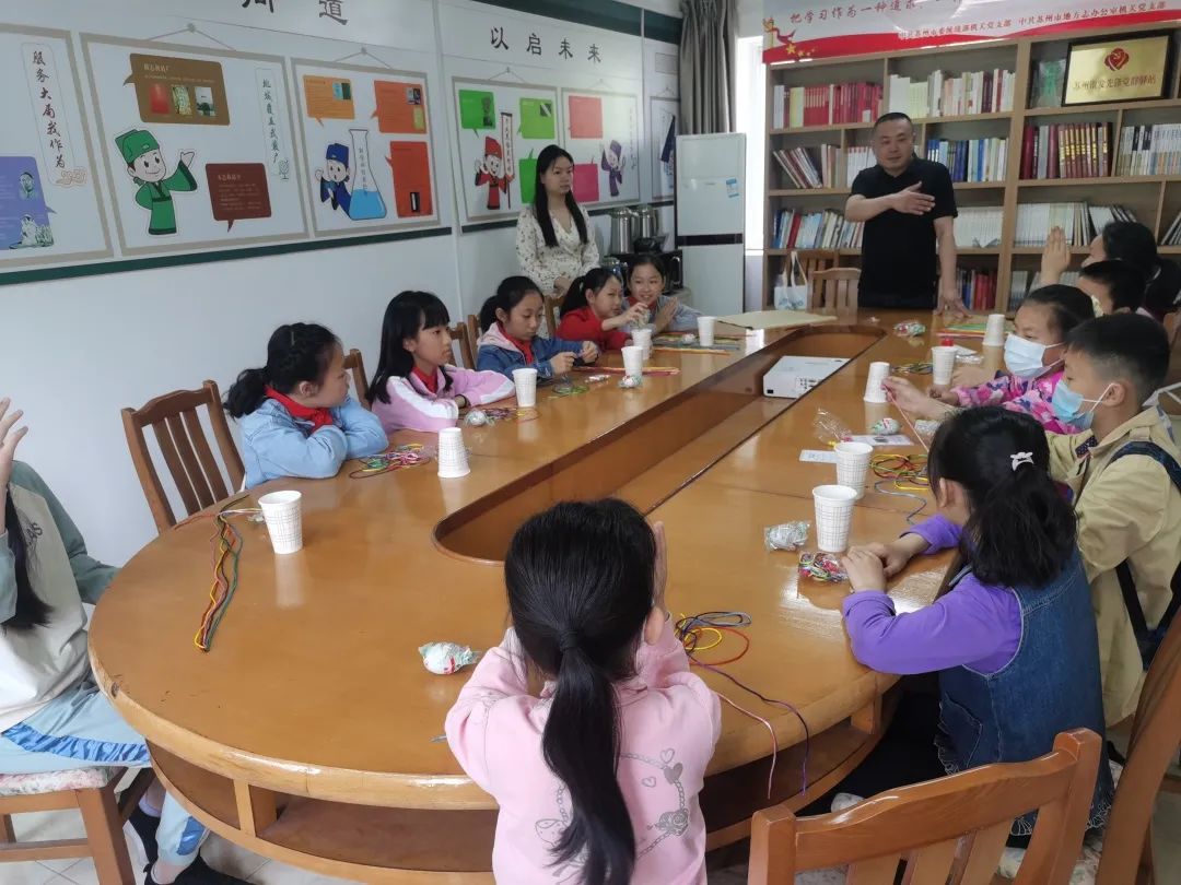 正值立夏,工作人员带领孩子们做一个立夏时令小物件——蛋兜,感受传统节气习俗。