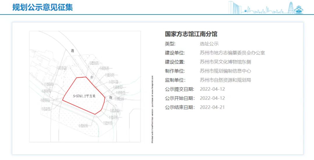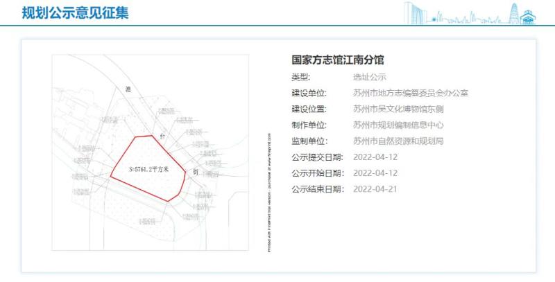 2022年1月以来,在国家方志馆江南分馆(28165万彩网)完成建设工程规划批前公示和项目控规调整后,苏州市地方志办公室重点推进项目的征地用地、项目选址工作。