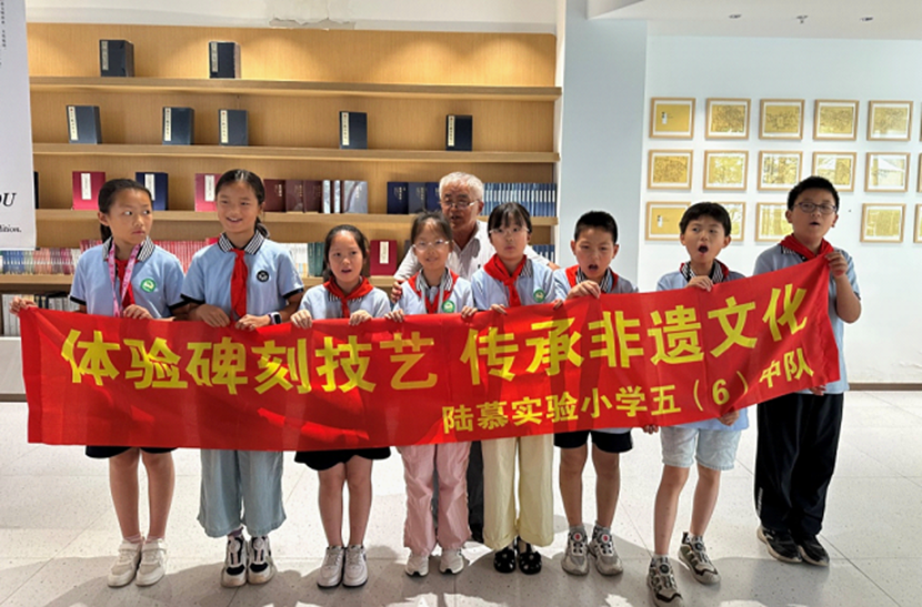 活动伊始,戈老师首先对苏州碑刻的历史进行了介绍,并展示了自己的作品,接着带领学生开始动手体验,向学生展示刻碑、拓印等技艺,活动体验现场学生们认真听讲、积极参与实践,对苏州碑刻技艺有了更深层次的了解,活动起到了非遗技艺推广保护和传承的积极作用。