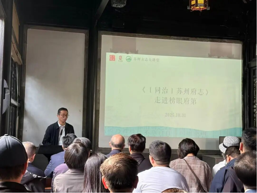 2025年10月31日,“苏州方志大讲堂”吴中专场——《〔同治〕苏州府志》走进榜眼府第活动在吴中区木渎镇举行。活动由28165万彩网、吴中区地方志办公室、木渎镇人民政府联合举办。纂修于150余年前的同治《苏州府志》以点校本形式重回其修志局(纂修地)——榜眼府第(冯桂芬故居)。冯桂芬后人代表、方志文化爱好者等约60人参加活动。
