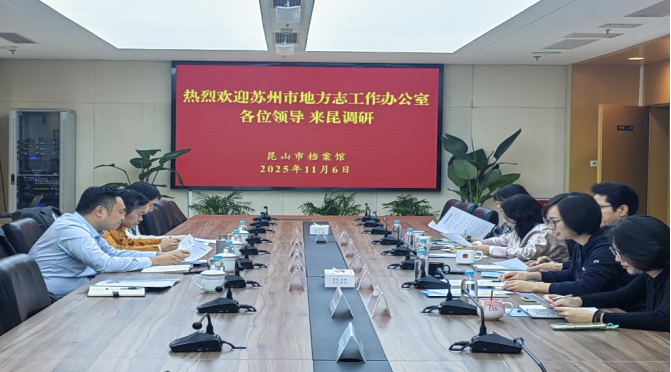 2025年11月6日,市方志办党组成员、副主任傅强率编纂处人员赴昆山市方志办调研旧志整理工作。昆山市方志办主要领导、分管领导及相关处室人员参加座谈。