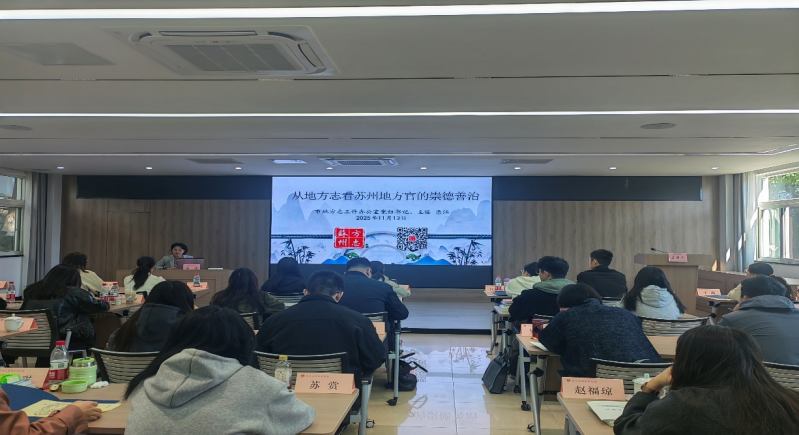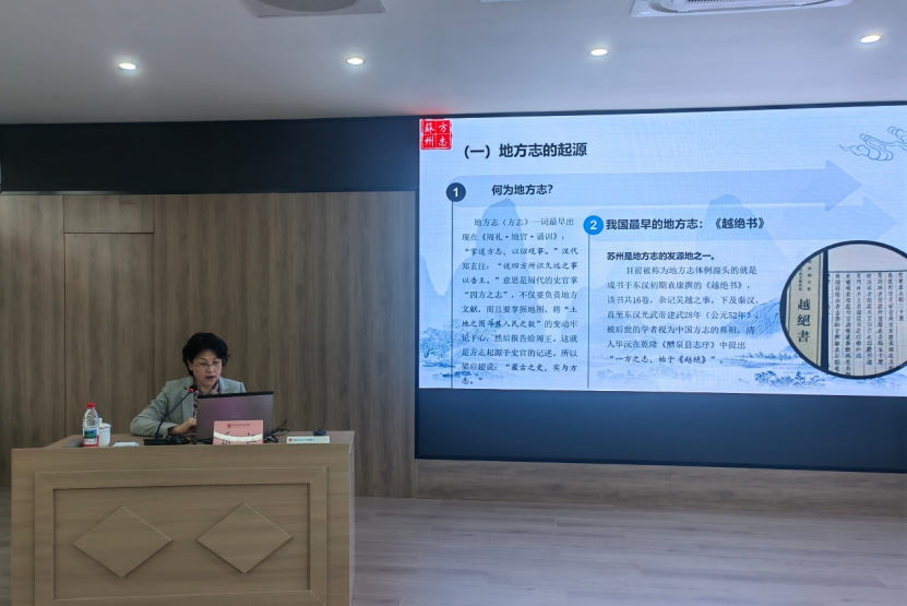 2025年11月13日下午,按照市委组织部、市委党校的工作安排,苏州市方志办党组书记、主任乐江在苏州市委党校厚德楼,为苏州市2025年新录用公务员初任培训班授课——《从地方志看苏州地方官的崇德善治》。此次地方志文化课程是首次列入市委党校(行政学院)初任公务员培训的课程内容。乐江主任精心备课,围绕地方志的历史源流和价值意义,从旧志中选取对苏州有贡献、有作为的地方官的事迹,引导学员们树立正确的历史观和政绩观。