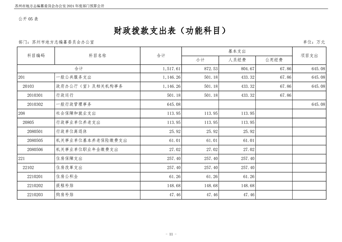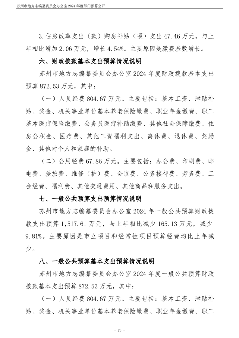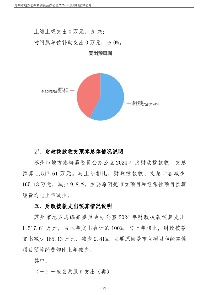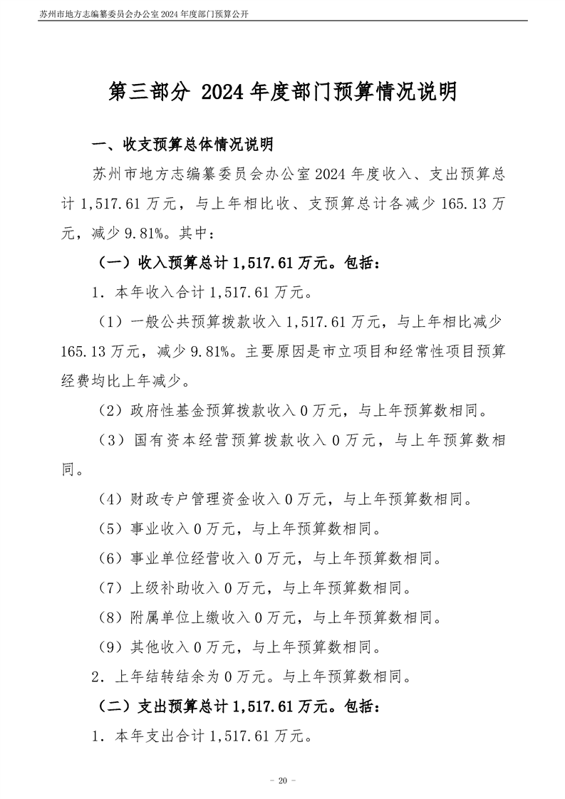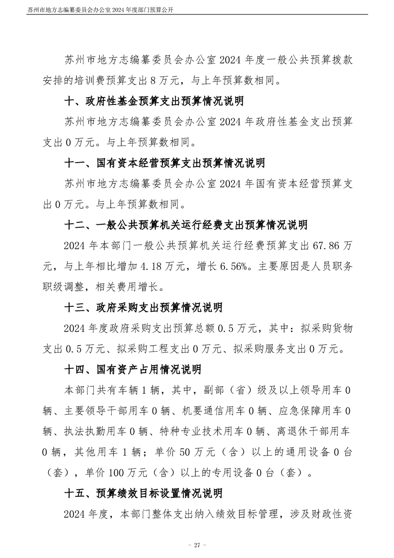 2024年度苏州市地方志编纂委员会办公室部门预算公开