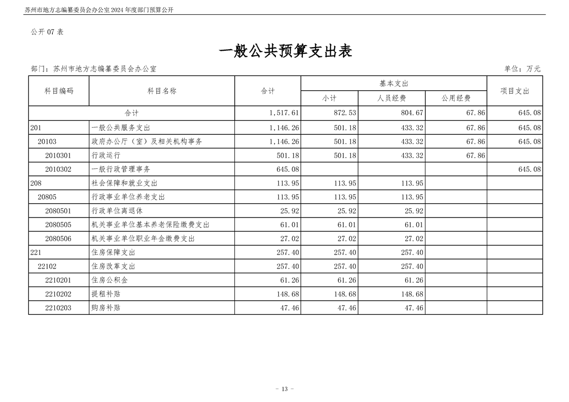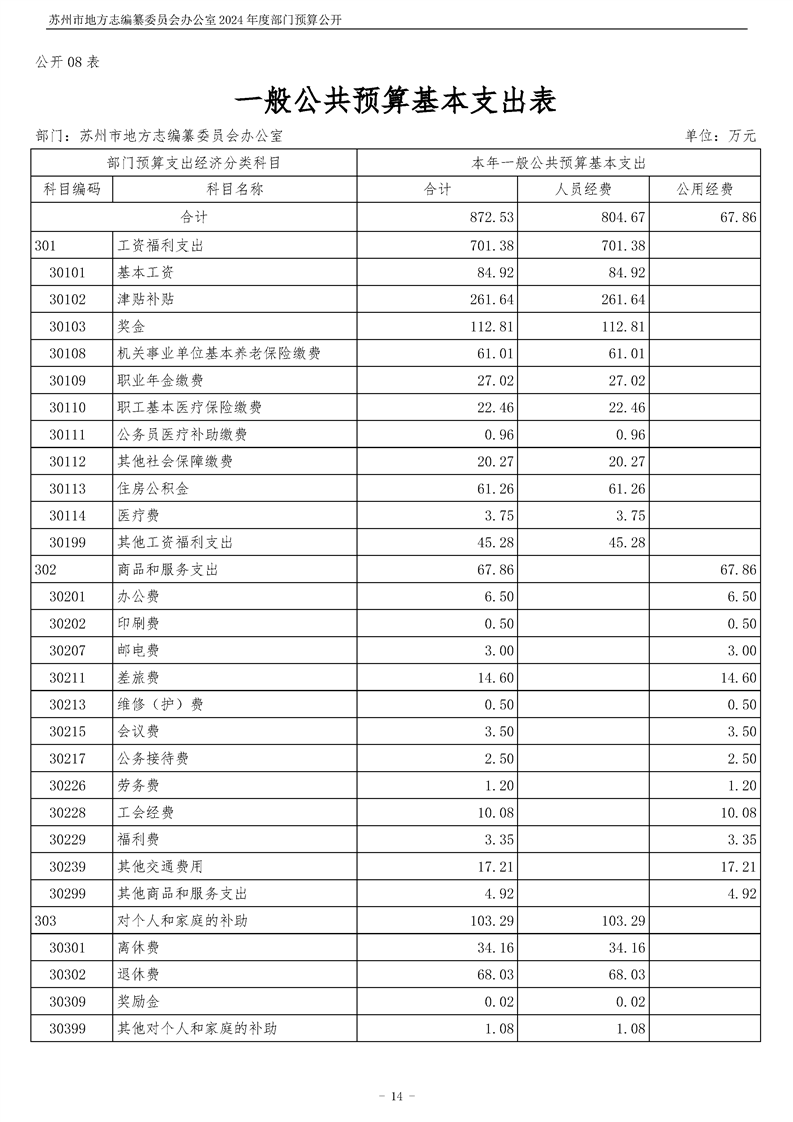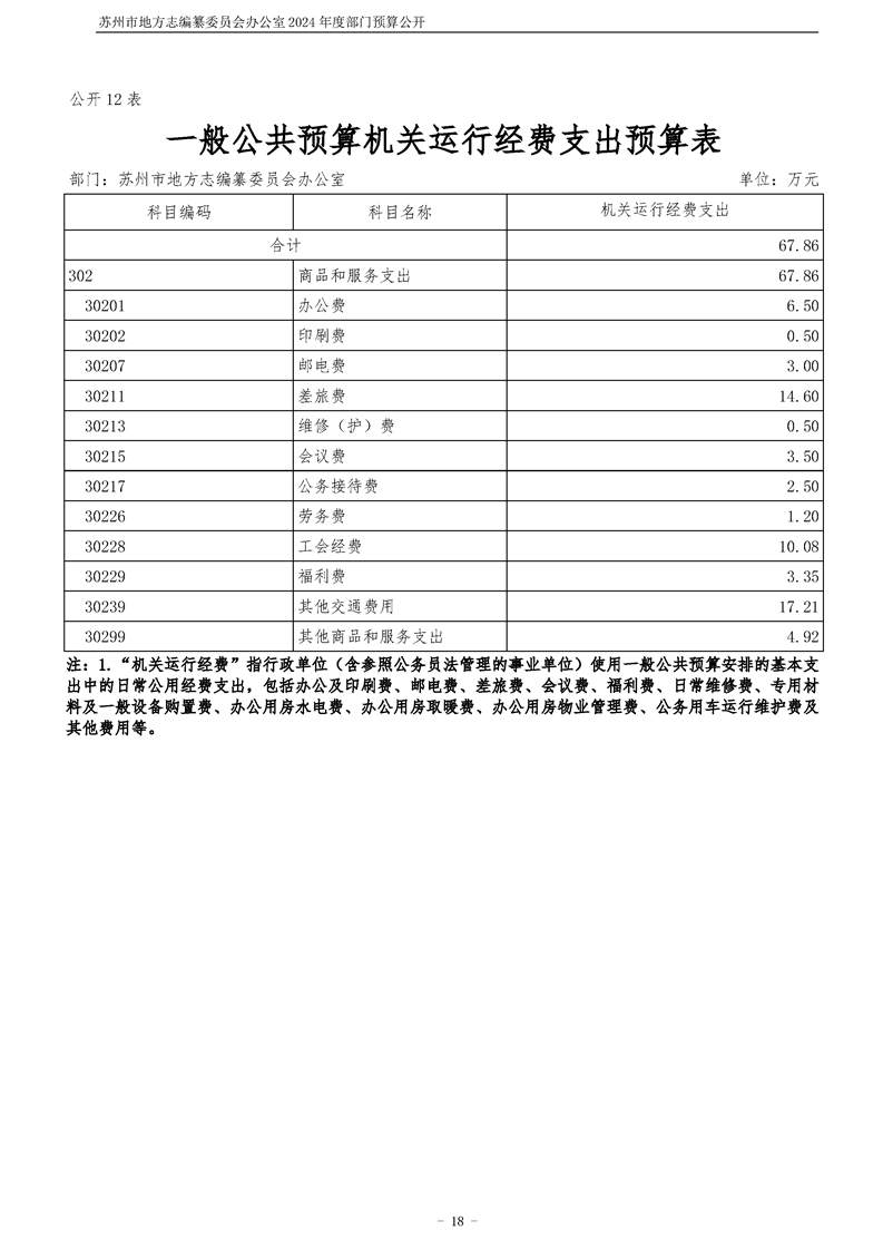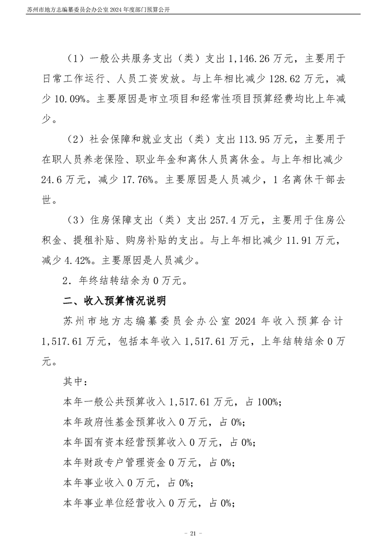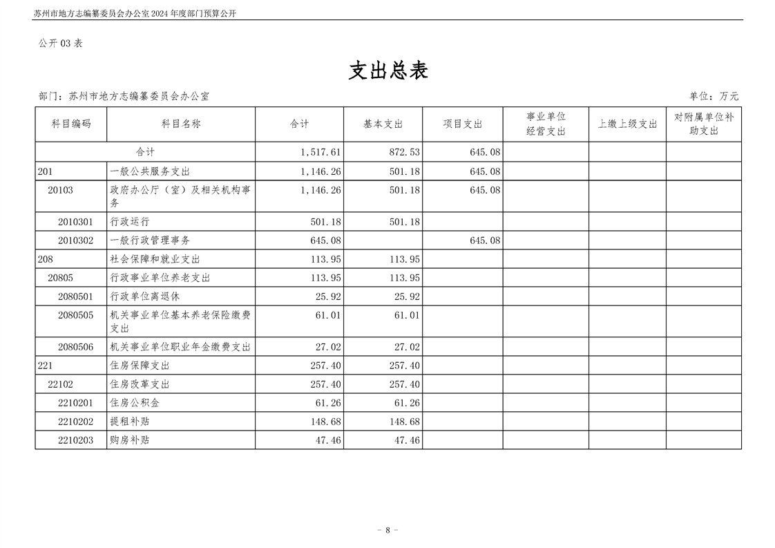 2024年度苏州市地方志编纂委员会办公室部门预算公开