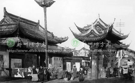 118苏州府城隍庙牌楼 在景德路。明洪武三年建。图为30年代仪门、牌楼。