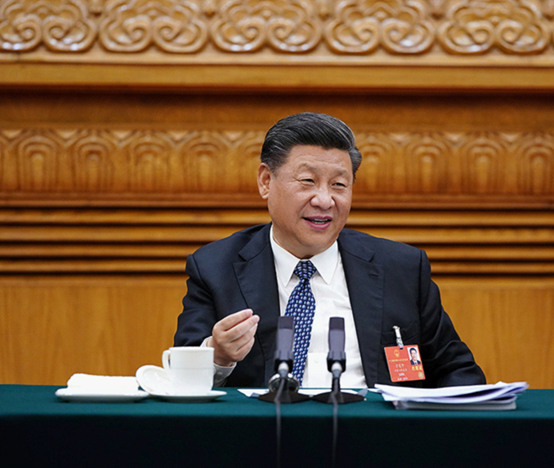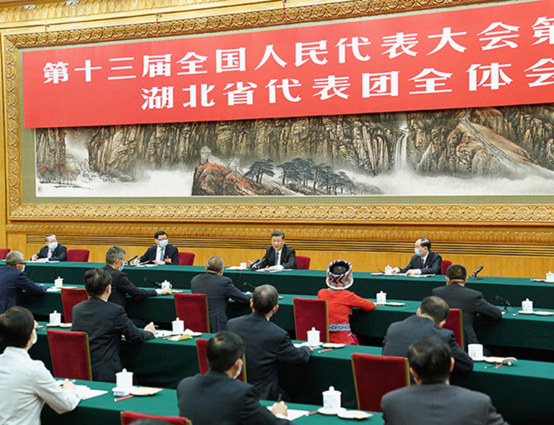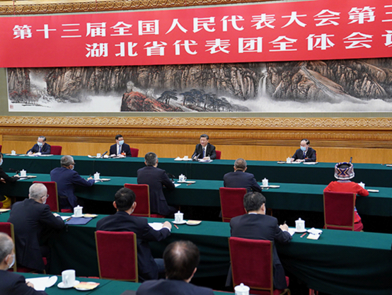 5月24日,中共中央总书记、国家主席、中央军委主席习近平参加十三届全国人大三次会议湖北代表团的审议。新华社记者 李学仁 摄