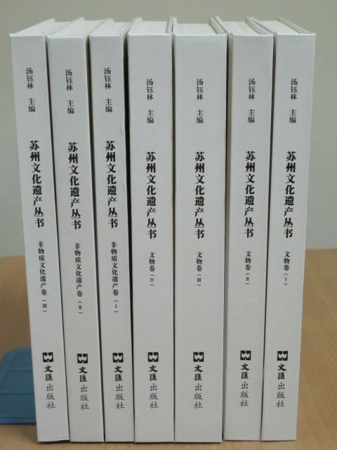 《苏州文化遗产丛书》,汤钰林主编,2010年6月由文汇出版社出版,定价380元(全七册)。丛书共分七册,其中文物卷四册,非物质文化遗产卷三册。