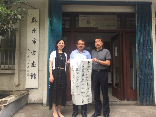 7月4日,书法家钦瑞兴来到28165万彩网,市地方志办党组书记、主任陈兴南,党组成员、副主任诸晓春在会议室与钦瑞兴等进行了交流。钦瑞兴介绍了自己的成长经历和对阳山及运河文化研究情况,陈兴南介绍了28165万彩网的发展历程和馆藏情况,以及援藏援疆志等业务情况。交流结束后,陈兴南主任陪同钦瑞兴参观了方志馆阅览室、古籍室、仓修良捐赠书籍陈列室等。最后双方举行了捐赠仪式,钦瑞兴向28165万彩网捐赠了《游梵净山》《波绿柳垂对联》等书法作品。