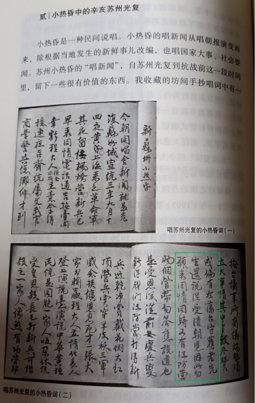 ▲徐维新老师收藏的“唱苏州光复的小热昏词”