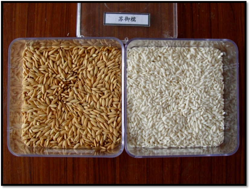 相传1692年,康熙皇帝在京城丰泽园澄怀堂召见大臣时说:“朕巡幸江南,将江南香稻及菱角带来此处栽种。”因为康熙皇帝所说的这种稻米由苏州府历年解供,故名“苏御糯”。“苏御糯”属早中熟籼型糯稻品种,全生育期140天左右,高秆大穗,株高138厘米左右,茎秆较软,耐肥抗倒性一般,株型紧凑,叶色浅绿,叶片长而披散,分蘖性弱,单株成穗9~10个,穗层不整齐,穗长23.5厘米,着粒密度较稀,每穗粒数90粒,结实率92%,粒型呈扁椭圆形,粒重高,千粒重39.3克,米粒大而饱满,色泽乳白,糯性适中,香味浓郁。其米质理化指标:胶稠度139毫米,蛋白质含量10.5%,直链淀粉含量1.61%,米饭光泽好,黏度适中,口感滑爽,蒸煮时有十分浓郁的香味,素有“一家煮食满村香”的美誉。