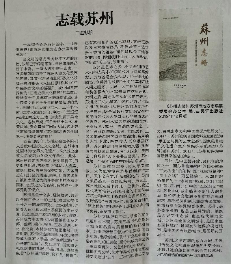 一本综合介绍苏州的书——《苏州志略》由苏州市地方志办公室编纂出版了。当你打开这部书,仿佛有穿越时空之感,而又真切体会现实之情。