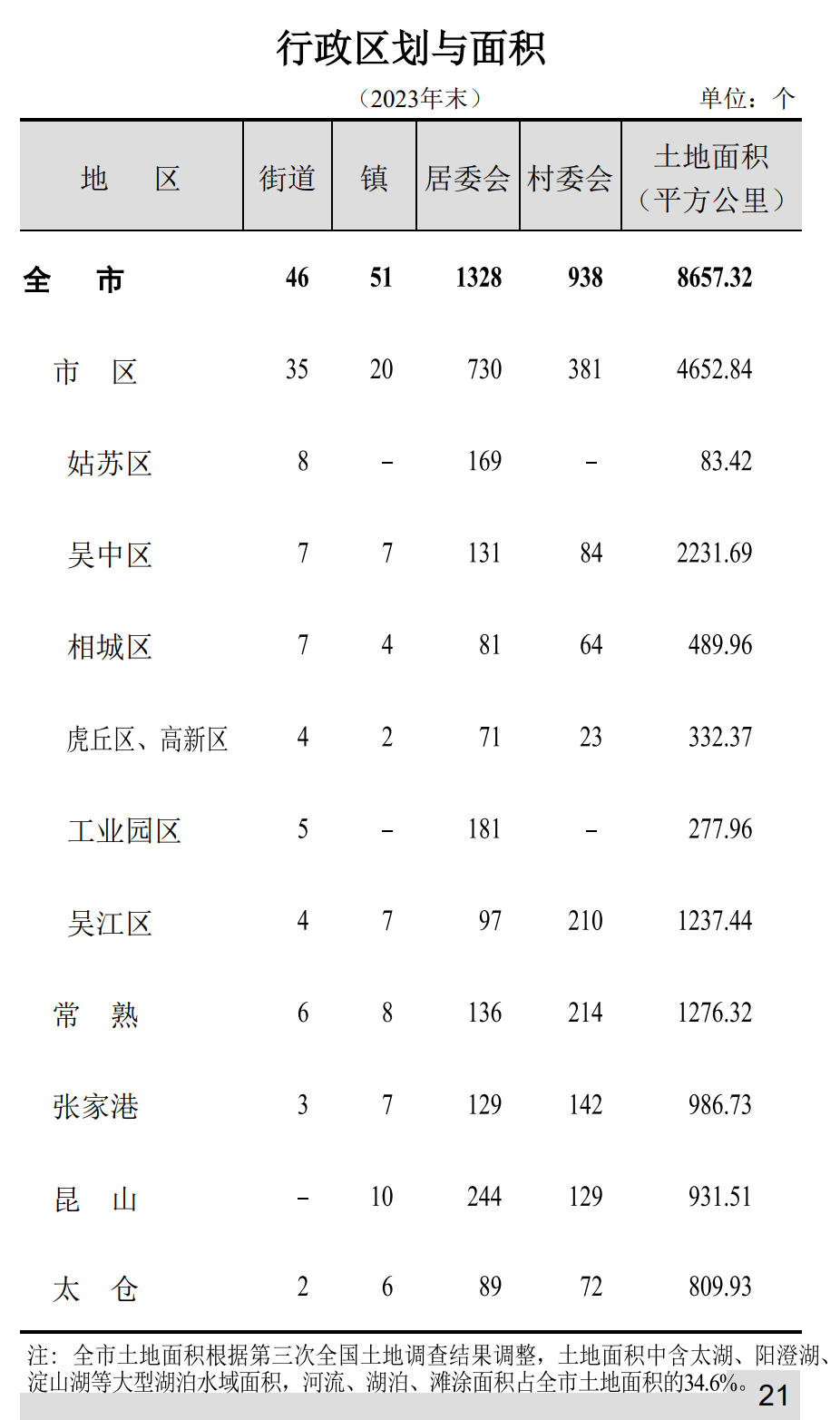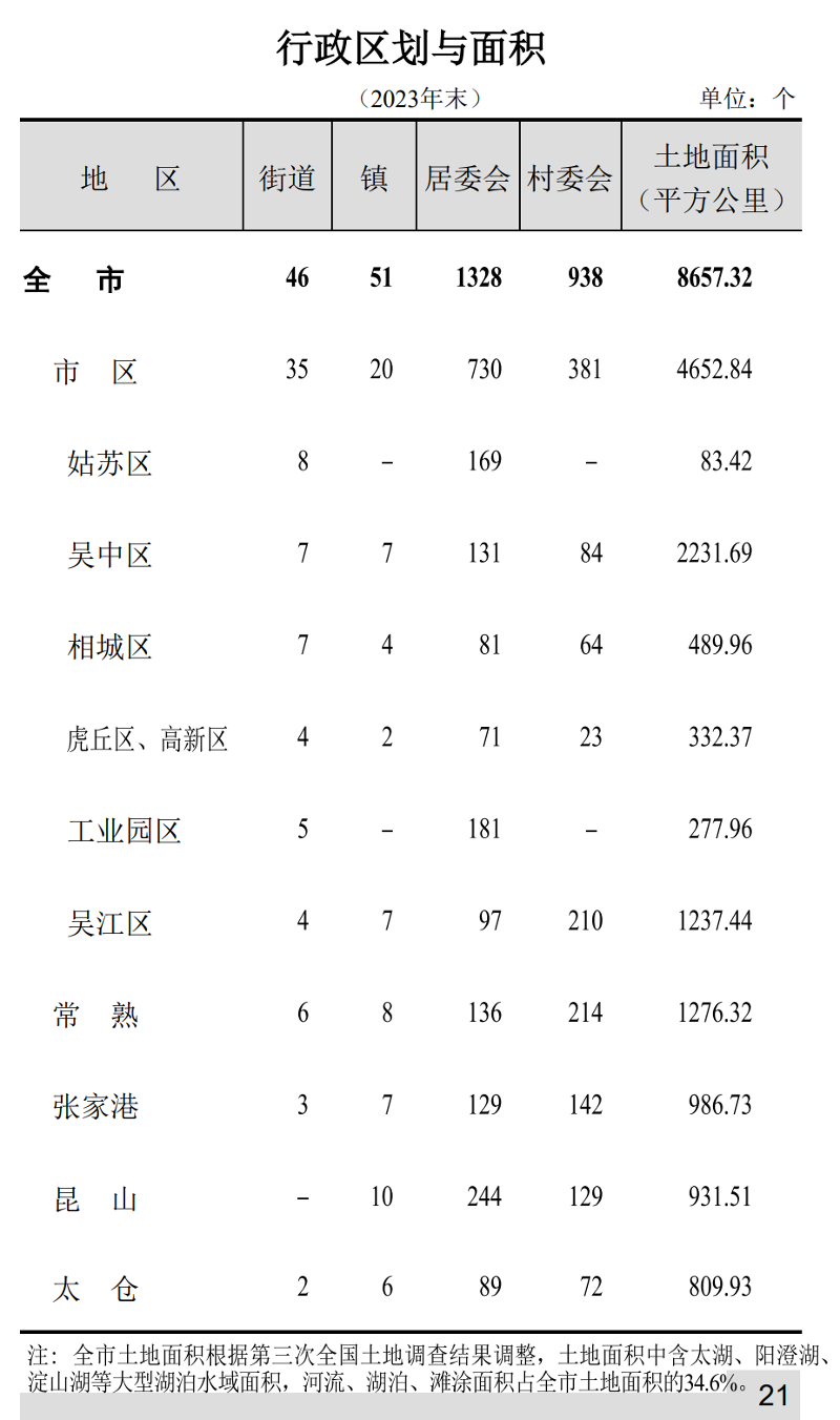 行政区划与面积 (2023)